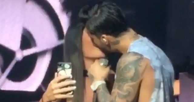 Durante un concierto en Manta, Ecuador, la chica evadió el protocolo de seguridad, subió a la tarima del cantante y comenzó a bailarle de manera atrevida. La joven sin ningún tipo de pena y con unos “shorts” bastante cortos, se le pegó al artista queriéndose robar el show.